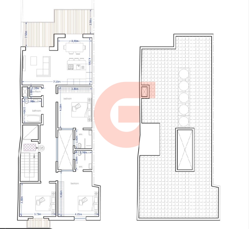 Nicely located in this popular village in Gozo comes this top-floor PENTHOUSE complemented by its own airspace, situated in a Small block of 5 units. The measuring floor area is 138 sqm. The nice, spacious layout consists of an entrance hallway leading to an open-plan living/dining/kitchen overlooking the sunny terrace and views, three bedrooms (two en-suite), a bathroom, and a box room. It is built in shell form.