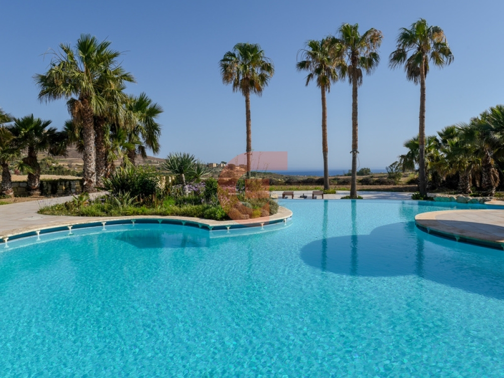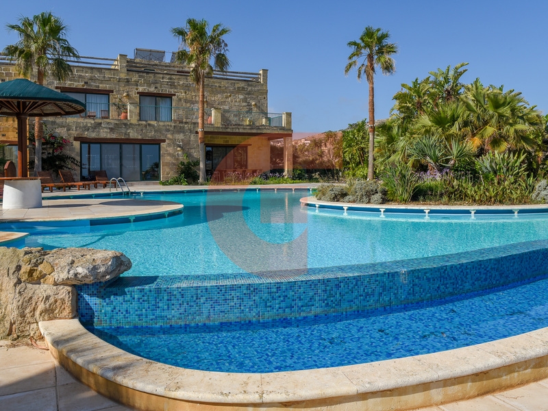 Tucked between the hills of iz-Zebbug and Gammar, Ghasri is a small village on the western side of the Island of Gozo. Dominated by the Ta’ Gurdan lighthouse, this picturesque village is surrounded by some of the most spectacular country and far-reaching sea and valley views, making it highly sought after by locals and expats alike. We are proud to present this lavish Villa/Farmhouse which is nestled amongst the working farming community, and with its elevated position, commands outstanding views of the lush countryside and the beautiful valley beyond. This property is nonetheless located in close proximity to the ferry making it easy to cross over to the main island of Malta, and within easy access to the beach and just 500m from all amenities. This fully detached Villa has been renovated to exacting standards whilst still retaining the charm and character of a traditional Gozitan home. Accessible through a little private lane, a large carport leads up to the property where you find a bright hallway leading to a lavish lounge which in turn opens up to one of the numerous terraces, some of which are covered. A separate dining room enjoys the same terrace together with a fully equipped kitchen. Further complimenting this level is a bedroom and a shower room. On the first level are three spacious bedrooms, all having their own fireplace and bathroom en-suite, one of which has a whirlpool bathtub. Two of the bedrooms lead out onto a fabulous sea-facing terrace with sunbeds and enjoy unparalleled views all around. Last but certainly not least, an absolutely stunning 160sqm private swimming pool is surrounded by an equally amazing deck and garden with a barbeque area and wonderful spaces ideal for entertaining, and which can only be seen to be appreciated. This spectacular residence is unrivaled in its genre and is testimony to some of the most panoramic views you could feast your eyes upon.